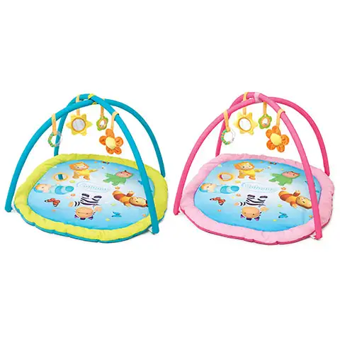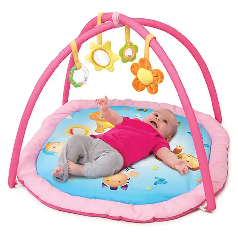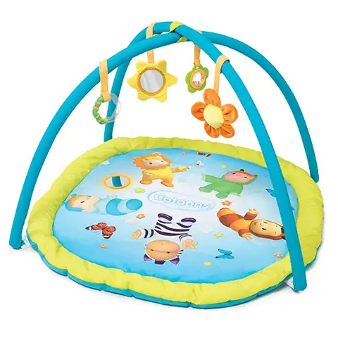 Tento skvelý hrací koberec dôkladne precvičí malé detičky s tým jednoduchým riešením, že hračky sú navešané na oblúku, ktorá sa nachádza nad kobercom. Visiace hračky prilákajú detičky na to, aby sa ich snažili chytiť, a tak sa postarajú o to, aby sa svalstvo dieťatka a koordinácie pohybu vhodne vyvíjali. Hračky poskytujú nespočetné množstvo zážitkov pre detičky, pretože jasné farby, a zaujímavé formy sú ozajstné objavovacie veci pre malých, ktoré sú vhodné ako zrkadielka, hrizátka, alebo aj ako hrkálky.