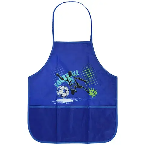 Kvôli futbalovému vzoru sa táto zástera určite bude páčiť malým chlapcom, ktorí sú fanúšikom športu. Predné vrecká majú dostatok priestoru pre štetce, ktoré sa práve nepoužívajú. Nočnou morou každého rodiča počas tvorivej práce je, keď deti počmárajú svoje oblečenie farbami. Táto zástera môže byť skvelým riešením na takéto prípady. Modrá zástera slúži na to, aby sa zabránilo znečisteniu oblečenia, pretože stačí zásteru zavesiť do krku tých najmenších, pretože zástera zachytí väčšinu farieb.