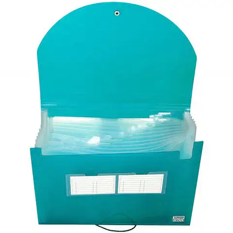 Ak hľadáte pre sebe praktický a veľkolepý obal na dokumenty, tak tento transparentný modrý obal môže byť dokonalou voľbou, pretože obsahuje tucet samostatných vreciek, navyše na prednej časti obalu je malý štítok, na ktorý sa dá napísať obsah obalu. Obal na dokumenty Spirit A4 je vyrobený z pružného, odolného materiálu PP, čo sa dá zatvoriť s pomocou gumového tlačidla. Tieto priehradky sú vybavené uškami, takže obsah obalu môže byť označený a dokonale usporiadaný.