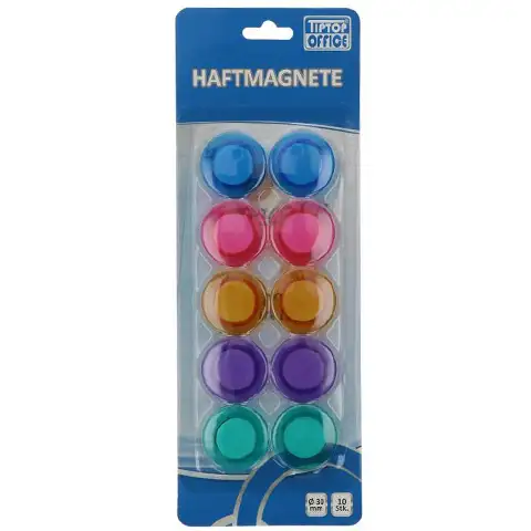 V tejto súprave je desať kusov magnetických gombíkov, ktoré majú rôzne farby a môžu byť skvelo použité v kancelárii, v škole alebo doma na chladničke, na zavesenie najdôležitejších dokumentov. Magnet je vynikajúci na pripevňovanie papierov, máp, pôdorysov na tabuľu a uľahčuje vám prácu, pretože nemusíte držať dokument jednou rukou. Magnetické gombíky s 30 cm priemerom sú perfektne vhodné na kancelárske použitie.