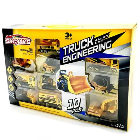 V tomto desať dielnom sete pracovných strojov sa deti môžu stretnúť s takými výnimočnými vozidlami, ako napríklad drapák, žeriav, vysokozdvižný vozík, buldozér a iné precízne vypracované žlté pracovné stroje. Stroje okrem podrobne vypracovaného dizajnu sú vybavené aj otočnými kolesami a pohyblivými ramenami, vďaka čomu môžu byť veľmi užitočné na výstavbe. Vďaka 1:64 mierke sa obľúbený pracovný stroj pohodlne zmestí do tašky detí.