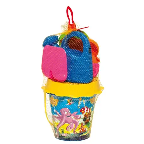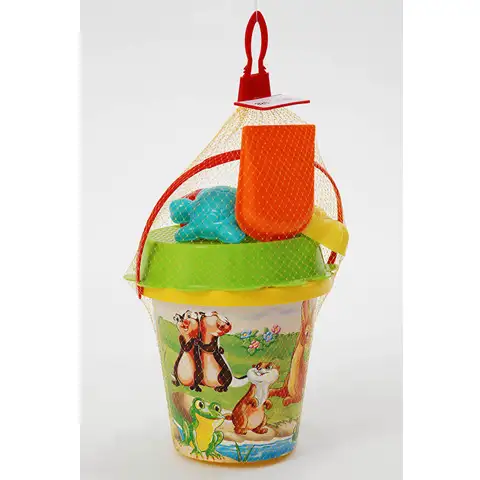 Skvelá základná sada do piesku pre deti, ktoré sa hrajú radi na pieskovisku. Súčasťou je malé rozprávkové vedierko, ktorého postavičky tiež upútajú pozornosť dieťatka. V sade sa nachádzajú všetky potrebné hračky, bez ktorých sa malý stavitelia na pieskovisku alebo v záhrade nezaobídu. Popri vedierku je tu aj sitko, lopatka a formičky. Vyrobené z kvalitného plastu, vďaka čomu slúžia pre dlhodobé zábavné hranie. Dodávame v rôznych farebných prevedeniach.