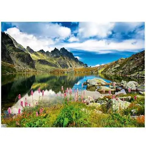 Tatranské jazerá sú obľúbenými turistickými cieľmi ako aj najvyhľadávanejšie miesta lyžiarskych nadšencov. Ak máš chuť v duchu navštíviť kus tatranskej prírody, tak poskladanie tohto prekrásneho obrázka z 3000 kusov puzzle dielikov bude pre teba zaručene dobrým potešením.