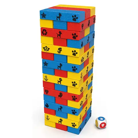 Teraz sme priniesli pre skutočných fanúšikov Tlapkovej patroly super vežovú hru, ktorej podstatou - podobne ako v Jenga hre - je odstraňovanie drevených prvkov z veže tak, aby sa nezrútila. Ale teraz je to iné, keďže tu každý drevený prvok je farebný a má rôzne vzory, sú dodávané aj s kockou. Farba a motív hodený kockami znamená, že hráči musia z veže odstrániť daný prvok, takže hra môže byť ešte vzrušujúcejšia. Rozmer postavenej veže: 8x8x28,3cm. Získajte túto hru a rodinná hra sa môže začať, ktorá určite bude pre vaše dieťa zábavným zážitkom.
