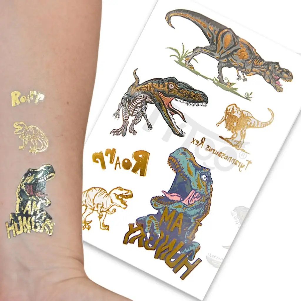 Využite šancu a vráťte sa späť v čase s týmito nálepkami so vzorom T-Rex! Tieto dočasné tetovacie nálepky sú vysoko kvalitné, takže si zachovávajú svoju živú farbu a detaily aj niekoľko dní. Ponorte sa do kráľovstva dinosaurov a zažite vzrušujúce dobrodružstvá!