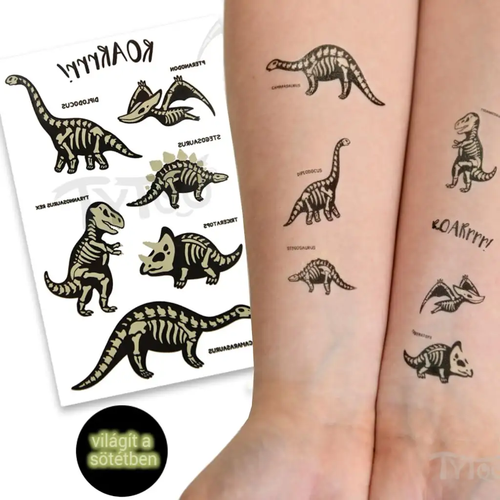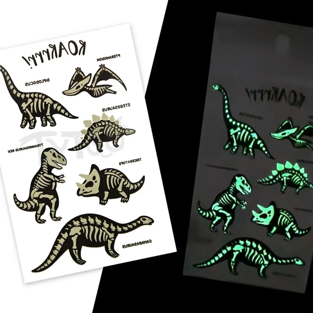 Vstúpte do tajomnej ríše staroveku s fosforeskujúcim dizajnom dinosaurov! Tieto dočasné tetovacie nálepky sú vysoko kvalitné, takže si zachovávajú svoju živú farbu a detaily po dlhú dobu, dokonca aj niekoľko dní. Ponorte sa do čarovného sveta svietiacich dinosaurov a zažite úžasné dobrodružstvá!