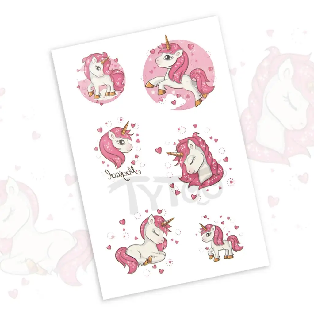 Ponorte sa do sveta nálepiek s ružovým jednorožcom a dovoľte im, aby vás očarili a naplnili váš život magickými chvíľami! Urobte svoj každodenný život pestrejším a zábavnejším s týmito očarujúcimi tetovaniami!