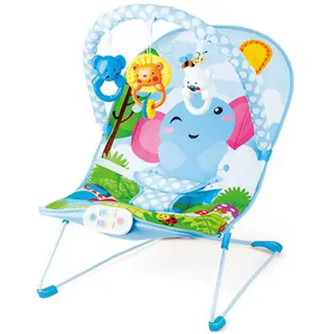 Môžete získať pre svoje dieťa praktické modré lehátko, ktoré je zdobené milým sloním vzorom. Extra pohodlie poskytujú ďalšie funkcie, pretože lehátko má zvukové efekty a vibračný program, ktorý zaistí pohodlie tých najmenších a umožní im ľahko zaspať. Detskú stoličku môžete používať prakticky buď počas kŕmenia alebo počas popoludňajších odpočinkoch alebo hrania. Hrkálky a hryzátky v súprave je možné zavesiť nad hlavu dieťaťa a upútať jeho pozornosť.