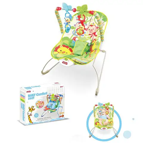 Môžete prekvapiť svoje dieťa s lehátkom, ktoré je zdobené milým safari vzorom, čo deti môžu používať už od 1 roka a okamžite obsadiť svoje pohodlné miesto. Lehátko obsahuje ďalšie prvky, ktoré sa objavujú vo forme hrkálky a hryzátka visiacich nad hlavou dieťaťa a ľahko upútajú pozornosť malých detí. Lehátko má vibračnú a hudobnú funkciu, ktorá dokáže ukolembať dieťa v priebehu niekoľkých sekúnd.